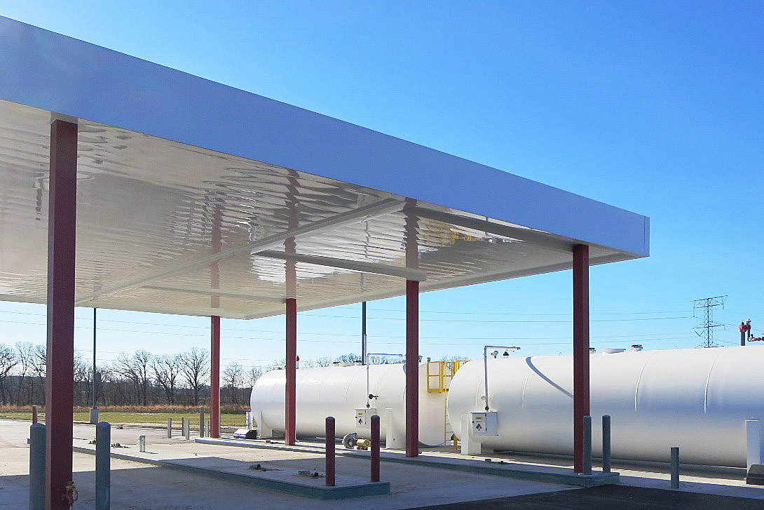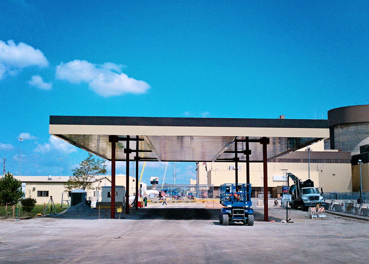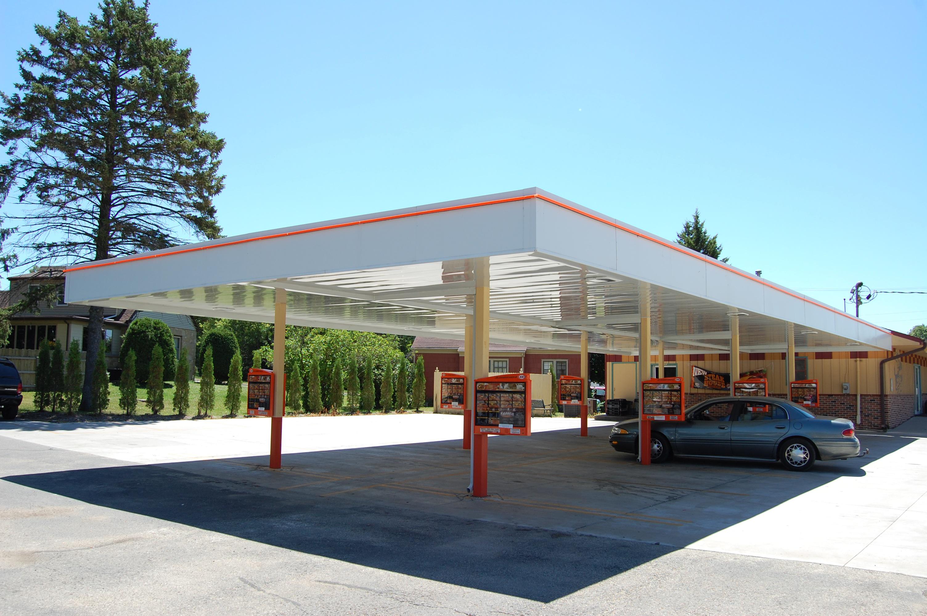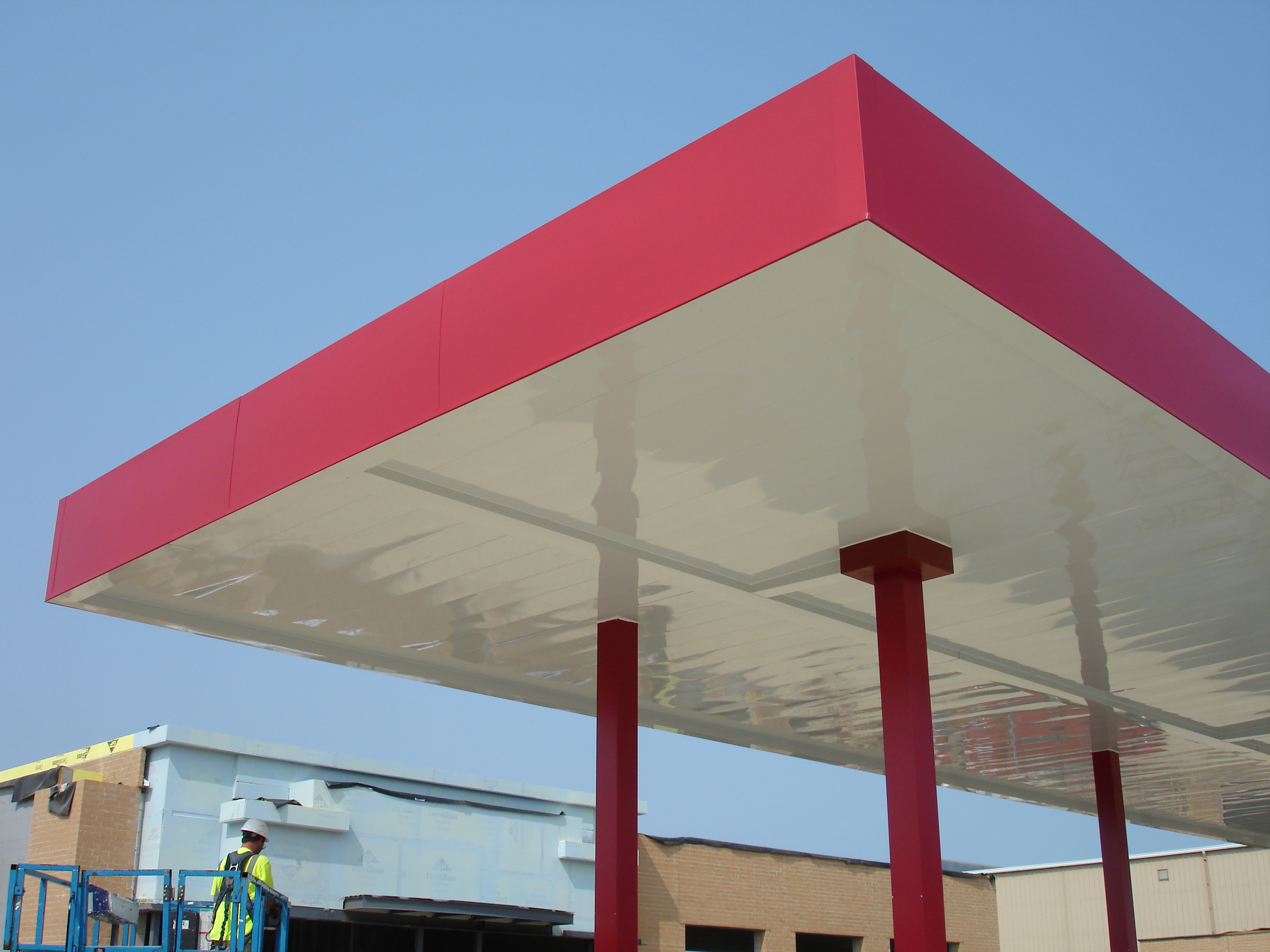 Steel canopies serve a variety of purposes, including advertising/signage, control-access, sheltering an entrance or loading area, support of lighting systems, and weather protection for people, equipment, or outdoor storage. While the most popular application is for convenience stores and petroleum-related uses, our product, the Tsui Canopy, is selected for use in a wide variety of commercial industries.