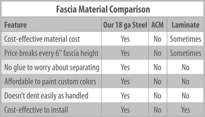 - Backflashing included on many fascia styles to keep snow/ice/wind away from fascia, extends life of lit fascia systems and protects from blow-offs