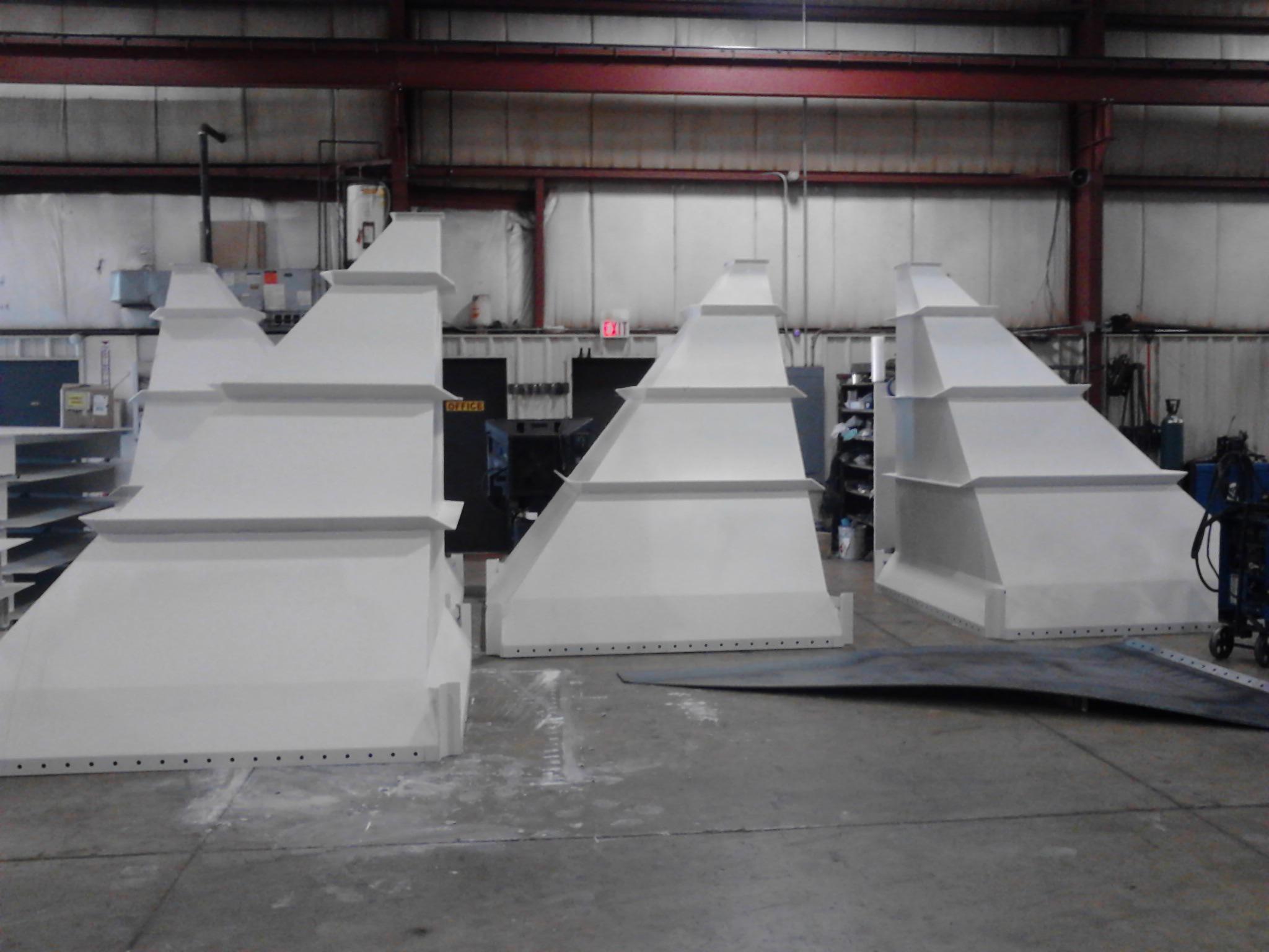 Our 18,880 square foot structural steel shop features a CNC plasma table with up to 260 amps of current, a high-speed band saw, a punch press, an ironworker to cut angle and plate, mig welding, stick welding, hand held plasma torch, and a structural priming booth. We routinely fabricate agricultural hoppers, platforms, stairs, railings, and structural steel packages to our customers’ design and specifications.